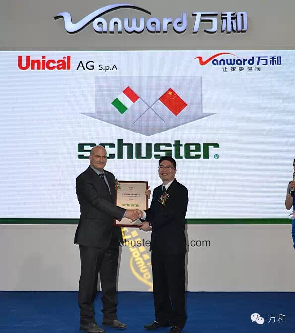 Unical供热集团总经理 Sergio Fiorani 表示,此次与万和合作,是符合双方各自战略发展所需,双方优势互补,共同开拓国际市场。Unical看好中国未来燃气供热市场的发展趋势,万和在中国成熟而强大的销售和售后服务体系,有利于帮助Schuster品牌开拓中国这个重要市场,同时,Unical看重万和在燃气热水器行业的领先技术以及包括燃气壁挂炉、热泵和太阳能热水器、厨房电器等门类齐全的制造资源,这些产品非常有吸引力,通过Unical的网络将这些产品销售到欧洲等国际市场,这对Unical产品线来说是非常重要的补充,将完善Unical供热集团的全球布局。