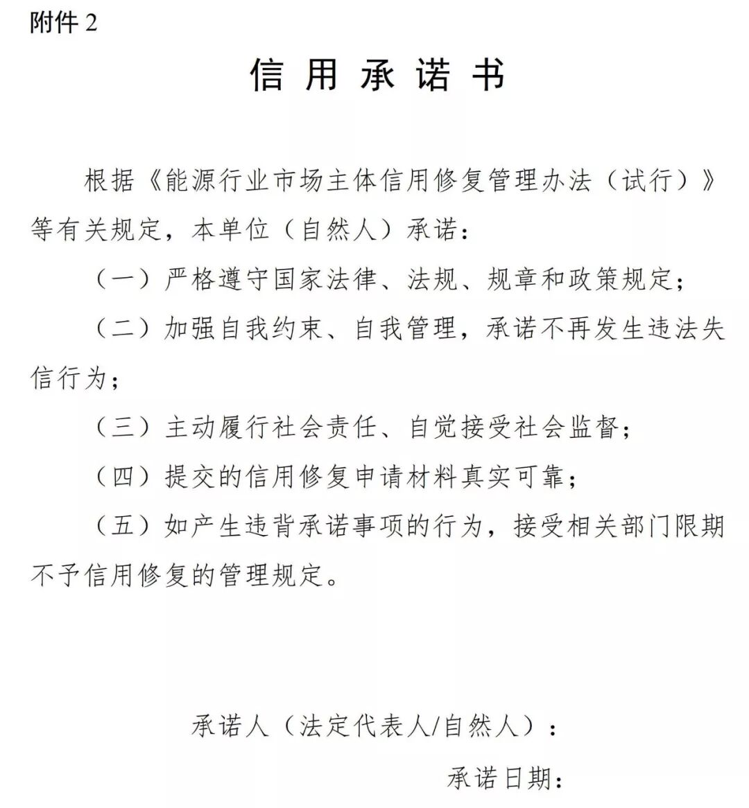国家能源局印发《能源行业市场主体信用修复管理办法(试行)》